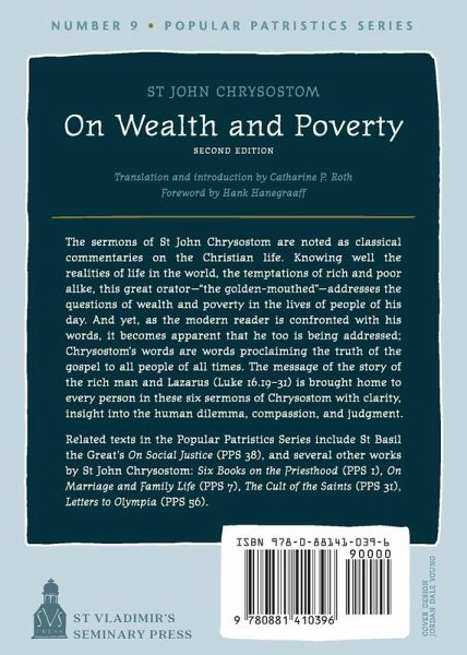 This great orator addresses the question of wealth and poverty in the lives of people of his day. Yet Chrysostom's words proclaim the truth of the Gospel to all people of all times.