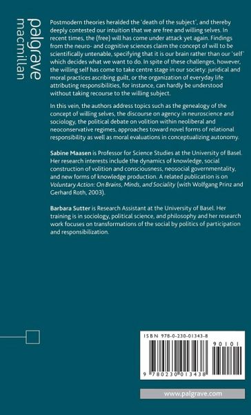 Introduction; S.Maasen & B. Sutter PART I: SELF - PAST AND PRESENT Self-Help: The Making of Neosocial Selves in Neoliberal Society; S.Maasen, B.Sutter & S.Duttweiler Technologies of the Will and their Christian Roots; IA.Hahn & M.Schorch Governing By Will; S.Maasen , B.Sutter & S.Duttweiler PART II: SELF AND (SOCIO-)SCIENTIFIC KNOWLEDGE Governing the Will in a Neurochemical Age; N.Rose The Person as an Effect of Communication; A.Nassehi PART III: SELF AND POLITICS Creating Citizen-Consumers? Public Service Reform and (Un)Willing Selves; J.Clarke, J. Newman & L.Westmarland Neopolitics: Voluntary Action in the Neoconservative Regime; B.Cruikshank 'Craving' Research: Smart Drugs and the Elusiveness of Desire; M.Valverde PART IV: SELF AND MORALITY From Voluntary to Relational Action: Responsibility and Value in a Global Context; K.J.Gergen The Role of the Self-Model for Self-Determination; T.Vierkant