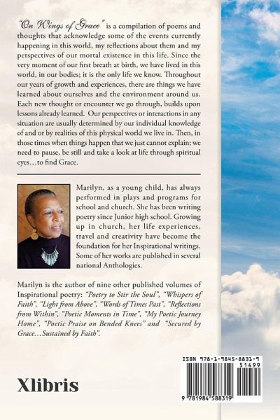 "On Wings of Grace" is a compilation of poems and thoughts that acknowledge some of the events currently happening in this world, my reflections about them and my perspectives of our mortal existence in this life. Since the very moment of our first breath at birth, we have lived in this world, in our bodies; it is the only life we know. Throughout our years of growth and experiences, there are things we have learned about ourselves and the environment around us. Each new thought or encounter we go through, builds upon lessons already learned. Our perspectives or interactions in any situation are usually determined by our individual knowledge of and or by realities of this physical world we live in. Then, in those times when things happen that we just cannot explain; we need to pause, be still and take a look at life through spiritual eyes...to find Grace.