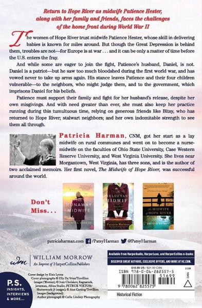 Return to Hope River as midwife Patience Hester, along with her family and friends, faces the challenges of the home front during World War II The women of Hope River trust midwife Patience Hester, whose skill in delivering babies is known for miles around. But though the Great Depression is behind them, troubles are not—for Europe is at war . . . and it can be only a matter of time before the U.S. enters the fray. And while some are eager to join the fight, Patience’s husband, Daniel, is not. Daniel is a patriot—but he saw too much bloodshed during the first world war, and has vowed never to take up arms again. His stance leaves Patience and their four children vulnerable—to the neighbors, who might judge them, and to the government, which imprisons Daniel for his beliefs. Patience must support their family and fight for her husband’s release, despite her own misgivings. And with need greater than ever, she must also keep her practice running during this tumultuous time, relying on generous friends like Bitsy, who has returned to Hope River; stalwart neighbors; and her own indomitable strength to see them all through.