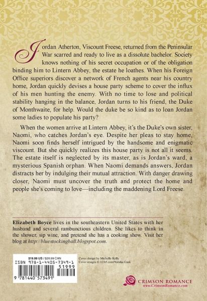 "Once an Innocent by Elizabeth Boyce is a fantastic espionage romance that has some surprising action and gripping drama. If you are a 007 fan, you will be entertained by this novel." --The Romance Reviews Jordan Atherton, Viscount Freese, returned from the Peninsular War scarred and ready to live as a dissolute bachelor. Society knows nothing of his secret occupation or of the obligation binding him to Lintern Abbey, the estate he loathes. When his Foreign Office superiors discover a network of French agents near his country home, Jordan quickly devises a house party scheme to cover the influx of his men hunting the enemy. With no time to lose and political stability hanging in the balance, Jordan turns to his friend, the Duke of Monthwaite, for help. Would the duke be so kind as to loan Jordan some ladies to populate his party? When the women arrive at Lintern Abbey, it's the Duke's own sister, Naomi, who catches Jordan's eye. Despite her pleas to stay home, Naomi soon finds herself intrigued by the handsome and enigmatic viscount. But she quickly realizes this house party is not all it seems. The estate itself is neglected by its master, as is Jordan's ward, a mysterious Spanish orphan. When Naomi demands answers, Jordan distracts her by indulging their mutual attraction. With danger drawing closer, Naomi must uncover the truth and protect the home and people she's coming to love--including the maddening Lord Freese.