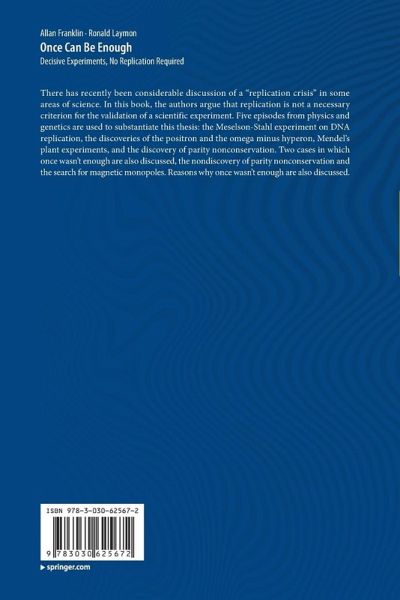There has recently been considerable discussion of a "replication crisis" in some areas of science. In this book, the authors argue that replication is not a necessary criterion for the validation of a scientific experiment. Five episodes from physics and genetics are used to substantiate this thesis: the Meselson-Stahl experiment on DNA replication, the discoveries of the positron and the omega minus hyperon, Mendel's plant experiments, and the discovery of parity nonconservation. Two cases in which once wasn't enough are also discussed, the nondiscovery of parity nonconservation and the…mehr