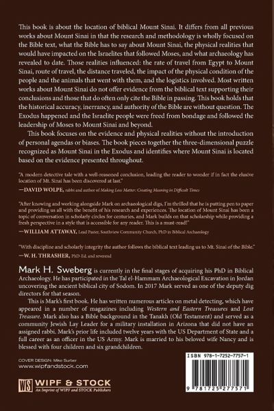 This book is about the location of biblical Mount Sinai. It differs from all previous works about Mount Sinai in that the research and methodology is wholly focused on the Bible text, what the Bible has to say about Mount Sinai, the physical realities that would have impacted on the Israelites that followed Moses, and what archaeology has revealed to date. Those realities influenced: the rate of travel from Egypt to Mount Sinai, route of travel, the distance traveled, the impact of the physical condition of the people and the animals that went with them, and the logistics involved. Most written works about Mount Sinai do not offer evidence from the biblical text supporting their conclusions and those that do often only cite the Bible in passing. This book holds that the historical accuracy, inerrancy, and authority of the Bible are without question. The Exodus happened and the Israelite people were freed from bondage and followed the leadership of Moses to Mount Sinai and beyond. This book focuses on the evidence and physical realities without the introduction of personal agendas or biases. The book pieces together the three-dimensional puzzle recognized as Mount Sinai in the Exodus and identifies where Mount Sinai is located based on the evidence presented throughout.