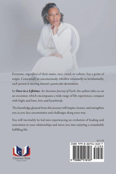 Everyone, regardless of their status, race, creed, or culture, has a point of origin. Consciously or unconsciously, whether voluntarily or involuntarily, each person is moving toward a particular destination. In Once in a Lifetime: An Awesome Journey of Faith, the author takes us on an excursion, which encompasses a wide range of life experiences, compact with highs and lows, love and heartbreak. The knowledge gleaned from this journey will inspire, humor, and strengthen you as you face uncertainties and challenges along your way. You will inevitably be led into experiencing an evolution of healing and restoration in your relationships and move you into enjoying a remarkably fulfilling life. 2
