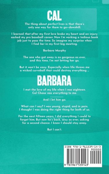 Cal The thing about perfect lives is that there's only one way for them to go-downhill. I learned that after my first love broke my heart and an injury sacked my pro baseball career. Now I'm working a tedious bank job just to pass the time. So imagine my surprise when I find her in my first big meeting. Barbara Murphy The one who got away is as gorgeous as ever, and this time, I'm not letting her go. But it won't be easy. Especially when life throws me a wicked curveball that could destroy everything. Barbara I met the love of my life when I was eighteen. Cal Chase was everything to me. And I let him go. What can I say? I was young, stupid, and in pain. I thought I was doing the right thing for both of us. For the next fifteen years, I did everything I could to forget him. But now he's back, sexy as ever, asking for a second chance. I know I should stay away. But I can't.