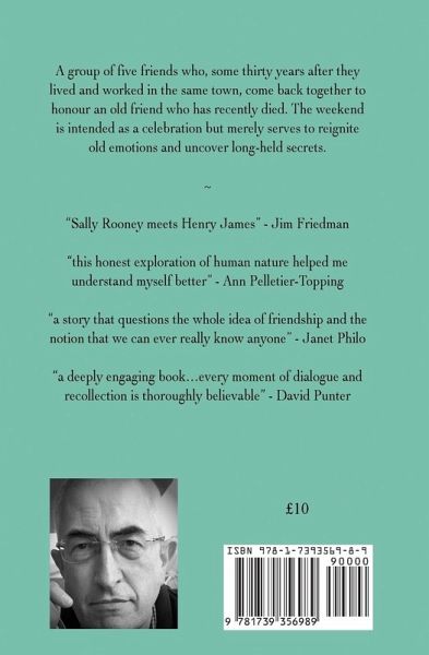 A group of five friends who, some thirty years after they lived and worked in the same town, come back together to honour an old friend who has recently died. The weekend is intended as a celebration but merely serves to reignite old emotions and uncover long-held secrets. "Sally Rooney meets Henry James" - Jim Friedman "this honest exploration of human nature helped me understand myself better" - Ann Pelletier-Topping "a story that questions the whole idea of friendship and the notion that we can ever really know anyone" - Janet Philo "a deeply engaging book...every moment of dialogue and recollection is thoroughly believable" - David Punter