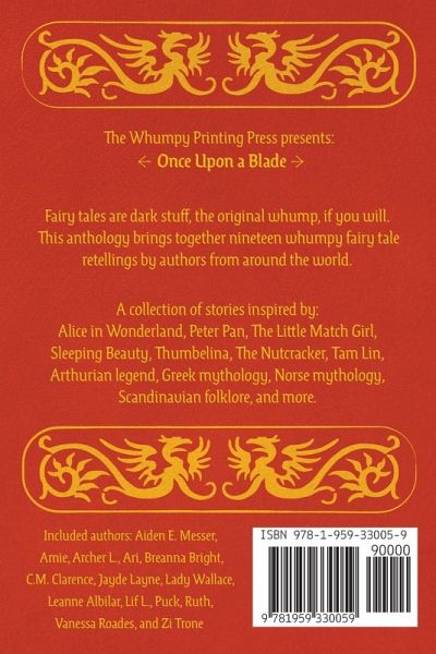 The Whumpy Printing Press presents Once Upon a Blade. Fairy tales are dark stuff, the original whump, if you will. This anthology brings together nineteen whumpy fairy tale retellings. All proceeds from the sale of this book will be donated to the Trevor Project, which provides crisis support to LGBTQ+ youth.