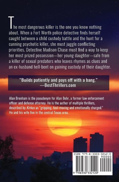 What if a predator becomes the prey? What if a hunter has eyes on your child? In a twisted game of cat and mouse, Detective Madison Chase must outwit a serial killer targeting sex offenders-before her own daughter becomes the next victim. October in Fort Worth takes on a sinister hue for Penny Grimes. She's not just a vigilante; she's a poetic executioner, leaving headless pedophiles as her gruesome calling cards. Each murder scene is adorned with a chilling rhyme, taunting the police and, in particular, haunting veteran homicide detective Madison Chase. But Penny has a darker agenda. She's set her sights on Chase's daughter, Emily-a blonde, blue-eyed four-year-old, living image of the child Penny has always yearned for. Unbeknownst to Chase, while she's hot on the trail of Fort Worth's most elusive serial killer, Penny is plotting to kidnap Emily. In a pulse-pounding race against time, Madison Chase must navigate a maze of deceit, vengeance, and dark motives. Can she apprehend Fort Worth's deadliest killer before her family is torn apart forever? The stakes have never been higher.
