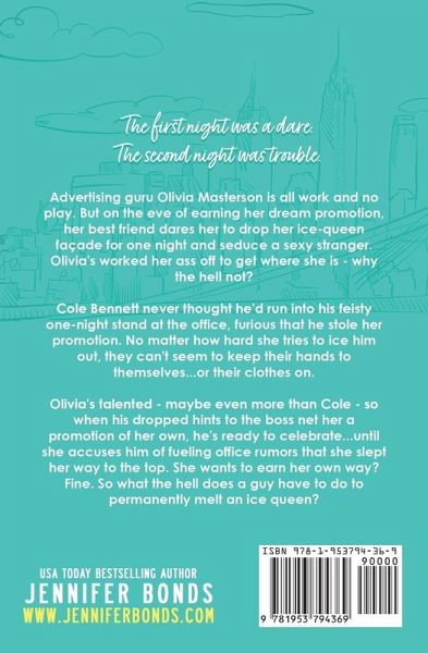 The first night was a dare. The second night was trouble... Advertising guru Olivia Masterson is all work and no play. But on the eve of earning her dream promotion, her best friend dares her to drop her ice-queen façade for one night and seduce a sexy stranger. Olivia's worked her ass off to get where she is - why the hell not? Cole Bennett never thought he'd run into his feisty one-night stand at the office, furious that he stole her promotion. No matter how hard she tries to ice him out, they can't seem to keep their hands to themselves...or their clothes on. Olivia's talented - maybe even more than Cole - so when his dropped hints to the boss net her a promotion of her own, he's ready to celebrate...until she accuses him of fueling office rumors that she slept her way to the top. She wants to earn her own way? Fine. So what the hell does a guy have to do to permanently melt an ice queen?