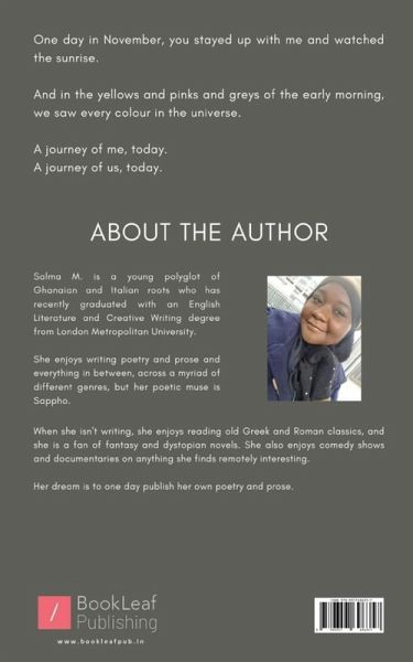""One day in November, you stayed up with me and watched the sunrise. And in the yellows and pinks and greys of the early morning, we saw every colour in the universe. A journey of me, today. A journey of us, today.""
