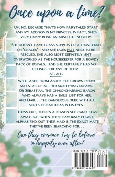 Once upon a time? Um, no. Because that's how fairytales start and Ivy Addison is no princess. In fact, she's very happy being an absolute nobody. She doesn't have glass slippers or a trust fund or "graces"-and she's pretty sure she doesn't need rescuing. She also most definitely isn't overworked as the housekeeper for a rowdy pack of royals... and she certainly has no feelings for any of them. Well, aside from Asher, the Crown Prince and star of all her mortifying dreams. Or Sebastian, the oh-so-charming baron who always has a smile just for her. And Dair, the dangerous duke with all sorts of bad ideas in his eyes. Turns out, there's a reason she can't stay away. But when these famously eligible men find out their maid is their mate... Can they convince Ivy to believe in happily ever after?