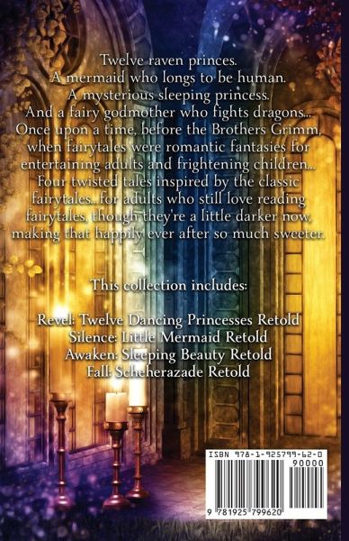 Twelve raven princes. A mermaid who longs to be human. A mysterious sleeping princess. And a fairy godmother who fights dragons... Once upon a time, before the Brothers Grimm, when fairytales were romantic fantasies for entertaining adults and frightening children... Four twisted tales inspired by the classic fairytales...for adults who still love reading fairytales, though they're a little darker now, making that happily ever after so much sweeter. This collection includes: Revel: Twelve Dancing Princesses Retold Silence: Little Mermaid Retold Awaken: Sleeping Beauty Retold Fall: Scheherazade Retold