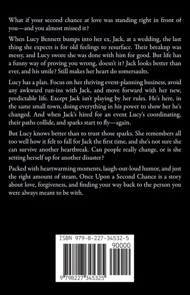 What if your second chance at love was standing right in front of you-and you almost missed it? When Lucy Bennett bumps into her ex, Jack, at a wedding, the last thing she expects is for old feelings to resurface. Their breakup was messy, and Lucy swore she was done with him for good. But life has a funny way of proving you wrong, doesn't it? Jack looks better than ever, and his smile? Still makes her heart do somersaults. Lucy has a plan. Focus on her thriving event-planning business, avoid any awkward run-ins with Jack, and move forward with her new, predictable life. Except Jack isn't playing by her rules. He's here, in the same small town, doing everything in his power to show her he's changed. And when Jack's hired for an event Lucy's coordinating, their paths collide, and sparks start to fly-again. But Lucy knows better than to trust those sparks. She remembers all too well how it felt to fall for Jack the first time, and she's not sure she can survive another heartbreak. Can people really change, or is she setting herself up for another disaster? Packed with heartwarming moments, laugh-out-loud humor, and just the right amount of steam, Once Upon a Second Chance is a story about love, forgiveness, and finding your way back to the person you were always meant to be with.