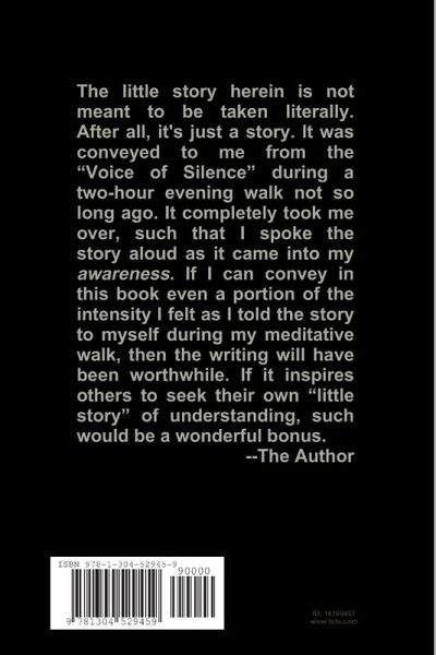 The "little story" told in this book was conveyed to the author from what he terms "the Voice of Silence" - that which the author knows in his heart to be Pure Love or "God." The author spontaneously received the story during a recent two-hour evening walk. It completely took him over, such that he spoke the story aloud as it came into his awareness. It was not an easy task to as vividly recall the story for sharing in writing. Still, the author has tried to do so, trusting that he has continued to be inspired in his heart and mind as the story has again unfolded.