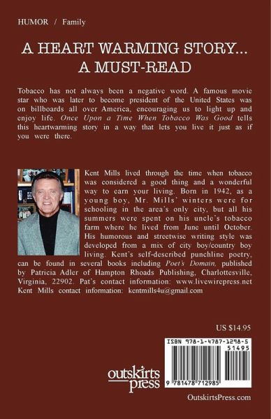 Most stories are categorized as fiction or non-fiction. "ONCE UPON A TIME WHEN TOBACCO WAS GOOD" is neither fiction nor non-fiction. It is both. The methods and techniques of raising tobacco during the 1940's and 1950's are not only extremely interesting but also very factual and educational. The story and its characters are all from the mind and imagination of the writer. However, the majority of the instances described in this fascinating story actually happened. Therefore, names were changed to protect the guilty. Tobacco has not always been a negative word. There was a time in the not so distant past when being in the business of raising tobacco was a very prestigious and much sought after way to earn a living. Back in the 1940's and 1950's one carried a great deal of respect if you farmed it...sold it...bought it...chewed it...or smoked it. A Famous movie star who was later to become president of the United States, was on billboards all over America, encouraging us to light up and enjoy life. All that changed on January 11, 1964. United States Surgeon General, Luther Terry, made the bold announcement that tobacco could be dangerous to your health. Not only was it an astounding statement, It began the demise and destruction of a culture and a way of life that will never exist in America again. "Once Upon a Time When Tobacco Was Good" tells this heartwarming story in a way that lets you live it just as you were there. The story's author, Kent Mills, grew up during this era in South Central Virginia in what is still known as the heart of tobacco country. His winters were for schooling in the area's only city, while all his summers were spent on his uncle's tobacco farm where he lived from June until October. Mr. Mills' humorous and streetwise writing style was developed from a mix of city boy/country boy living. His self-described "PUNCH LINE" poetry can be found in several books including "Poet's Domain", published by Patricia Adler of Hampton Rhoads Publishing,