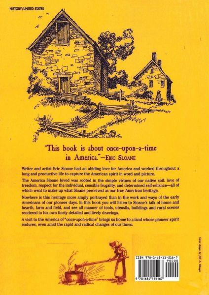 "This book is about once-upon-a-time in America." - Eric Sloane. Writer and artist Eric Sloane had an abiding love for America and worked throughout a long and productive life to capture the American spirit in word and picture. The America Sloane loved was rooted in the simple virtues of our native soil: love of freedom, respect for the individual, sensible frugality, and determined self-reliance - all of which went to make up what Sloane perceived as our true American heritage. Nowhere is this heritage more amply portrayed than in the work and ways of the early Americans in our pioneer days. In this book you will listen to Sloane's talk of home and hearth, farm and field, and see all manner of tooks, utensils, buildings and rural scenes rendered in his finely detailed and lively drawings. A visit to America of "once-upon-a-time" brings us home to a land whose pioneer spirit endures, even amid the rapid and radical changes of our times