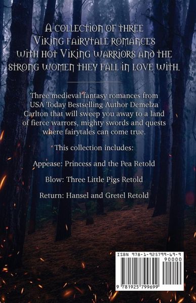 What wouldn't you do for a hot Viking prince of your very own? A collection of three Viking fairytale romances with hot Viking warriors and the strong women they fall in love with. Three medieval fantasy romances from USA Today Bestselling Author Demelza Carlton that will sweep you away to a land of fierce warrors, mighty swords and quests where fairytales can come true. This collection includes: Appease: Princess and the Pea Retold Blow: Three Little Pigs Retold Return: Hansel and Gretel Retold