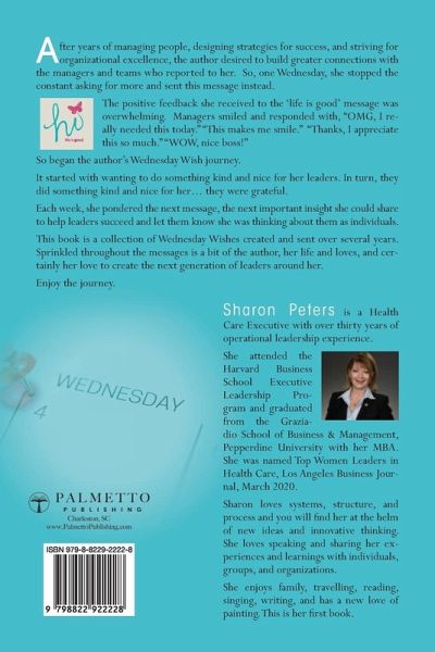 After years of managing people, designing strategies for success, and striving for organizational excellence, the author desired to build greater connections with the managers and teams who reported to her. So, one Wednesday, she stopped the constant asking for more and sent this message instead. The positive feedback she received to the 'life is good' message was overwhelming. Managers smiled and responded with, "OMG, I really needed this today." "This makes me smile." "Thanks, I appreciate this so much." "WOW, nice boss!" So began the author's Wednesday Wish journey. It started with wanting to do something kind and nice for her leaders. In turn, they did something kind and nice for her... they were grateful. Each week, she pondered the next message, the next important insight she could share to help leaders succeed and let them know she was thinking about them as individuals. This book is a collection of Wednesday Wishes created and sent over several years. Sprinkled throughout the messages is a bit of the author, her life and loves, and certainly her love to create the next generation of leaders around her.