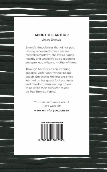 Emma's life polarises that of her past. Having recovered from a severe mental breakdown, she lives a happy, healthy ad whole life as a passionate entrepreneur, wife and mother of three. through her work as an inspiring speaker, writer and 'whole being' coach, Emma share the lessons she's learnt on her quest for happiness and freedom, empowering others to re-write their stories and be free from suffering .