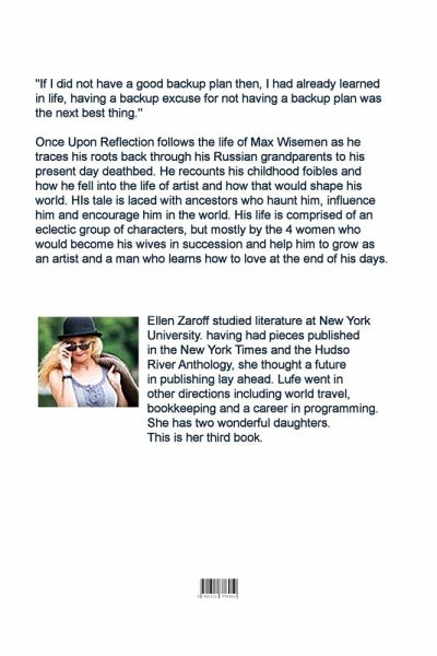 "If I did not have a good backup plan then, I had already learned in life, having a backup excuse for not having a backup plan was the next best thing." Once Upon Reflection follows the life of Max Wisemen as he traces his roots back through his Russian grandparents to his present day deathbed. He recounts his childhood foibles and how he fell into the life of artist and how that would shape his world. HIs tale is laced with ancestors who haunt him, influence him and encourage him in the world. His life is comprised of an eclectic group of characters, but mostly by the 4 women who would become his wives in succession and help him to grow as an artist and a man who learns how to love at the end of his days.