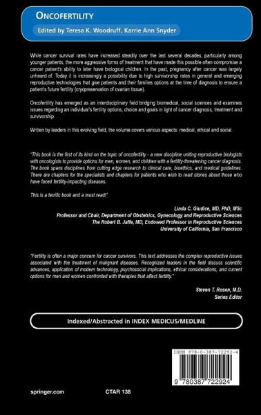 In the past, pregnancy after cancer was largely unheard of. Today, it is increasingly a possibility. Oncofertility has emerged as an interdisciplinary field bridging biomedical and social sciences, and examining issues regarding an individual's fertility options, choice and goals in light of cancer diagnosis, treatment and survivorship. Written by leaders in this evolving field, the volume covers various aspects: medical, ethical and social.