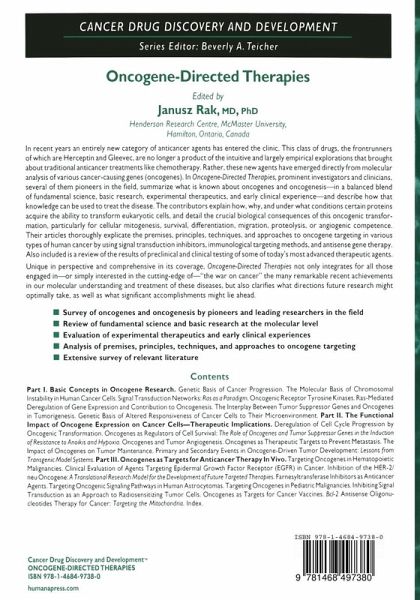 Prominent investigators and clinicians summarize in a balanced blend of fundamental science, basic research, experimental therapeutics, and early clinical experiences, what is known about oncogenes and oncogenesis, and describe how that knowledge can be used to treat the cancer. The contributors explain how, why, and under what conditions certain proteins acquire the ability to transform eukaryotic cells, and detail the crucial biological consequences of this oncogenic transformation, particularly for cellular mitogenesis, survival, differentiation, migration, proteolysis, or angiogenic competence. Their articles thoroughly explicate the premises, principles, techniques, and approaches to oncogene targeting in various types of human cancer by using signal transduction inhibitors, immunological targeting methods, and antisense gene therapy.