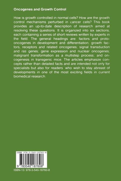 How is growth controlled in normal cells? How are the growth control mechanisms perturbed in cancer cells? This book provides an up-to-date description of research aimed at resolving these questions. It is organized into four sections, each containing a series of short reviews written by experts in the field. The general headings are: growth factors, receptors, and related oncogenes: transduction of mitogenic signals and ras oncogenes; nuclear oncogenes and regulation of gene expression; and multiple steps involved in malignant transformation. The articles emphasize concepts rather than detailed facts and are intended not only for specialists in the field but also for interested readers, such as physicians and advanced students, who wish to stay abreast of developments in one of the most exciting fields in current biomedical research.