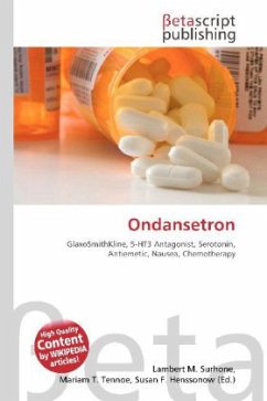 Please note that the content of this book primarily consists of articles available from Wikipedia or other free sources online. Ondansetron (INN) is a serotonin 5-HT3 receptor antagonist used mainly as an antiemetic to treat nausea and vomiting following chemotherapy. Its effects are thought to be on both peripheral and central nerves. Ondansetron reduces the activity of the vagus nerve, which activates the vomiting center in the medulla oblongata, and also blocks serotonin receptors in the chemoreceptor trigger zone. It has little effect on vomiting caused by motion sickness, and does not have any effect on dopamine receptors or muscarinic receptors. The 5-HT3 receptor antagonists are the primary drugs used to treat and prevent chemotherapy-induced nausea and vomiting (CINV). Many times they are given intravenously about 30 minutes before beginning therapy. Ondansetron is also effective in controlling post-operative nausea and vomiting (PONV) and post-radiation nausea and vomiting, and is a possible therapy for nausea and vomiting due to acute or chronic medical illness or acute gastroenteritis.