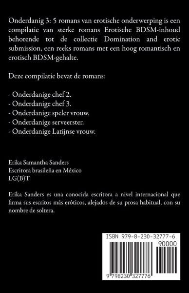 Onderdanig 3: 5 romans van erotische onderwerping is een compilatie van sterke romans Erotische BDSM-inhoud behorende tot de collectie Domination and erotic submission, een reeks romans met een hoog romantisch en erotisch BDSM-gehalte. Deze compilatie bevat de romans: - Onderdanige chef 2. - Onderdanige chef 3. - Onderdanige speler vrouw. - Onderdanige serveerster. - Onderdanige Latijnse vrouw.