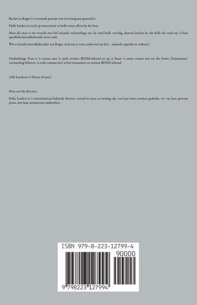 Rachel en Roger is 'n normale paartjie wat al twintig jaar getroud is. Hulle kinders is reeds op universiteit so hulle woon alleen by die huis. Maar die man is nie tevrede met hul seksuele verhoudings nie, hy vind hulle vervelig, daarom besluit hy dat hulle die raad van 'n baie spesifieke huweliksberader moet soek. Wie is hierdie huweliksberader wat Roger veral aan sy vrou aanbeveel om hul ... seksuele tegnieke te verbeter? Onderdanige Vrou is 'n roman met 'n sterk erotiese BDSM-inhoud en op sy beurt 'n nuwe roman wat tot die Erotic Domination-versameling behoort, 'n reeks romans met 'n hoë romantiese en erotiese BDSM-inhoud. (Alle karakters is 18 jaar of ouer) Nota oor die skrywer: Erika Sanders is 'n internasionaal bekende skrywer, vertaal in meer as twintig tale, wat haar mees erotiese geskrifte, ver van haar gewone prosa, met haar nooiensvan onderteken.