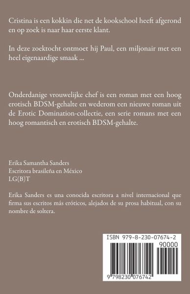 Cristina is een kokkin die net de kookschool heeft afgerond en op zoek is naar haar eerste klant. In deze zoektocht ontmoet hij Paul, een miljonair met een heel eigenaardige smaak ... Onderdanige vrouwelijke chef is een roman met een hoog erotisch BDSM-gehalte en wederom een nieuwe roman uit de Erotic Domination-collectie, een serie romans met een hoog romantisch en erotisch BDSM-gehalte.