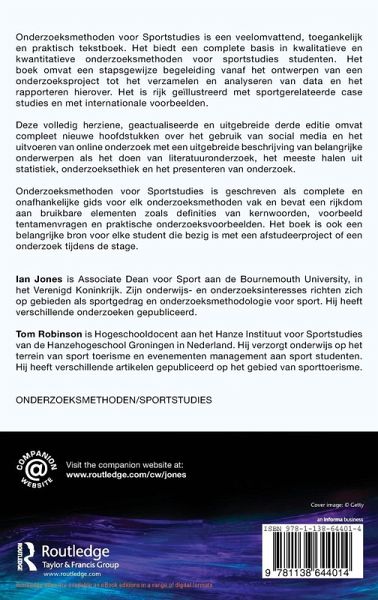 Onderzoeksmethoden voor Sportstudies is geschreven als complete en onafhankelijke gids voor elk onderzoeksmethoden vak en bevat een rijkdom aan bruikbare elementen zoals definities van kernwoorden, voorbeeld tentamenvragen en praktische onderzoeksvoorbeelden. Het boek is ook een belangrijke bron voor elke student die bezig is met een afstudeerproject of een onderzoek tijdens de stage.