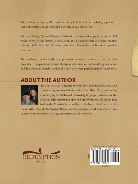The battle is heating up! The need for a simple, fresh, non-intimidating approach to spiritual warfare is more important now than it ever was before. "The One A Day Spiritual Warfare Workbook" is a companion guide to author William Mallory's "One A Day Spiritual Warfare" book. It is designed to help you review the text, gaining insight into spiritual warfare principles and how they can be easily applied to your life. The workbook contains insights and personal experiences that illustrate the principles presented. The questions for each chapter can be used for individual or group study and discussion, making this workbook a must have when purchasing the original book.