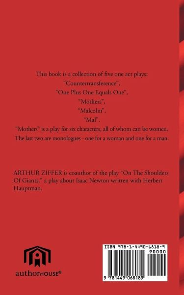 This book is a collection of five one act plays: "Countertransference", "One Plus One Equals One", "Mothers", "Malcolm", "Mal". "Mothers" is a play for six characters, all of whom can be women. The last two are monologues - one for a woman and one for a man.