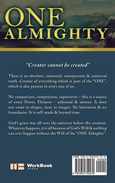 ONE ALMIGHTY! "Creator cannot be created"There is an absolute, immortal, omnipresent & universal truth. Creator of everything which is part of the "ONE", which is also present in every one of us.No comparison, competition, superiority - this is a source of every Power, Element - unbound & unseen. It does not come in shapes, sizes or images. No limitation & no boundaries. It is self-made & beyond time.God's grace was all-over the universe before the creation. Whatever happens, it is all because of God's Will & nothing can ever happen without the Will of the "ONE Almighty".