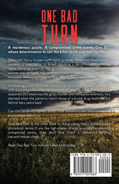 A murderous puzzle. A compromised crime scene. One DCI whose determination to nail the killer could cost him his life ... Detective Harry Grimm can't catch a break. When his much-needed vacation is interrupted by a call reporting a decomposed corpse, he races home to examine the gruesome remains. Learning the young woman was tortured, he's stunned when the peaceful countryside site explodes, destroying evidence and causing more death. Uncovering clues from the victim's car, Grimm struggles to keep up with a cunning killer when he discovers yet another body. But when the seasoned DCI examines the grisly murder and compares forensics, he's alarmed when the patterns match those of a brutal drug dealer he put behind bars years back. Can this hardened cop nab a wily crook before his own blood stains the picturesque dales? One Bad Turn is the ninth book in the gripping Harry Grimm police procedural series. If you like high-stakes drama, wounded heroes, and unexpected twists, then you'll love David J. Gatward's thrilling cat-and-mouse chase. Buy One Bad Turn to twist fate's knife today! One Bad Turn is the ninth book in the DCI Harry Grimm crime thriller series, set in the Yorkshire Dales, and perfect for fans of L. J. Ross, J.R. Ellis, Margaret Mayhew, Jeanne M. Dams, J. M. Dalgliesh, Roger Silverwood, J. D. Kirk, Adam Croft, and Simon McCleave