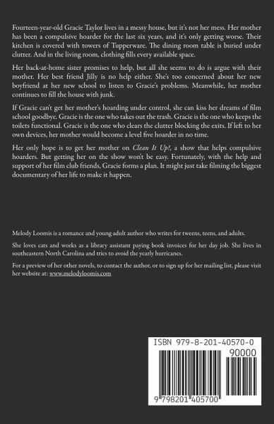 Fourteen-year-old Gracie Taylor lives in a messy house, but it's not her mess. Her mother has been a compulsive hoarder for the last six years, and it's only getting worse. Their kitchen is covered with towers of Tupperware. The dining room table is buried under clutter. And in the living room, clothing fills every available space. Her back-at-home sister promises to help, but all she seems to do is argue with their mother. Her best friend Jilly is no help either. She's too concerned about her new boyfriend at her new school to listen to Gracie's problems. Meanwhile, her mother continues to fill the house with junk. If Gracie can't get her mother's hoarding under control, she can kiss her dreams of film school goodbye. Gracie is the one who takes out the trash. Gracie is the one who keeps the toilets functional. Gracie is the one who clears the clutter blocking the exits. If left to her own devices, her mother would become a level five hoarder in no time. Her only hope is to get her mother on Clean It Up!, a show that helps compulsive hoarders. But getting her on the show won't be easy. Fortunately, with the help and support of her film club friends, Gracie forms a plan. It might just take filming the biggest documentary of her life to make it happen.