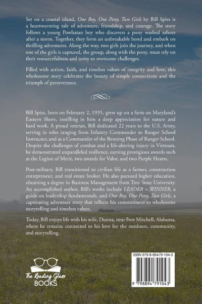 Synopsis: Set on a coastal island, One Boy, One Pony, Two Girls by Bill Spies is a heartwarming tale of adventure, friendship, and courage. The story follows a young Powhatan boy who discovers a pony washed ashore after a storm. Together, they form an unbreakable bond and embark on thrilling adventures. Along the way, two girls join the journey, and when one of the girls is captured, the group, along with the pony, must rely on their resourcefulness and unity to overcome challenges. Filled with action, faith, and timeless values of integrity and love, this wholesome story celebrates the beauty of simple connections and the triumph of perseverance. Autobiography: Bill Spies, born on February 2, 1935, grew up on a farm on Maryland's Eastern Shore, instilling in him a deep appreciation for nature and hard work. A proud veteran, Bill dedicated 22 years to the U.S. Army, serving in roles ranging from Infantry Commander to Ranger School Instructor, and as a Commander of the Benning Phase of Ranger School. Despite the challenges of combat and a life-altering injury in Vietnam, he demonstrated unparalleled resilience, earning prestigious awards such as the Legion of Merit, two awards for Valor, and two Purple Hearts. Post-military, Bill transitioned to civilian life as a farmer, construction entrepreneur, and real estate broker. He also pursued higher education, obtaining a degree in Business Management from Troy State University. An accomplished author, Bill's works include LEADER = WINNER, a guide on leadership fundamentals, and One Boy, One Pony, Two Girls, a captivating adventure story that reflects his commitment to wholesome storytelling and timeless values. Today, Bill enjoys life with his wife, Donna, near Fort Mitchell, Alabama, where he remains connected to his love for the outdoors, community, and storytelling.