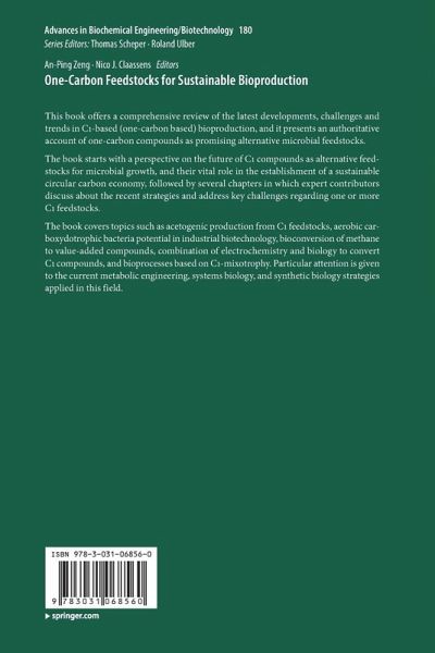 Obituary: In memory of Dr. Arren Bar-Even.- Introduction: The future belongs to the one-carbons.- Exploiting aerobic carboxydotrophic bacteria for industrial biotechnology.- Process engineering aspects of C1-conversion.- Systems biology on acetogenic bacteria for utilizing C1 feedstocks.- Systems metabolic engineering of methanotrophic bacteria for biological conversion of methane to value-added compounds.- Engineering synthetic methylotrophs by harnessing the power of metabolic engineering-guided adaptive laboratory evolution.- Bioconversion of methanol by synthetic methylotrophy.- Aerobic growth on methanol using the RuMP cycle.- Empower C1 - Combination of electrochemistry and biology to convert C1 compounds.- Extracellular electron powered microbial CO2 upgrading.- Understanding and engineering glycine cleavage system and its reversion for C1 biosynthesis.- Engineering the reductive glycine pathway - A promising synthetic metabolism approach for C1-assimilation.- Biosynthesisbased on one-carbon mixotrophy.- Conversion of carbon monoxide to chemicals by mixed culture approaches.