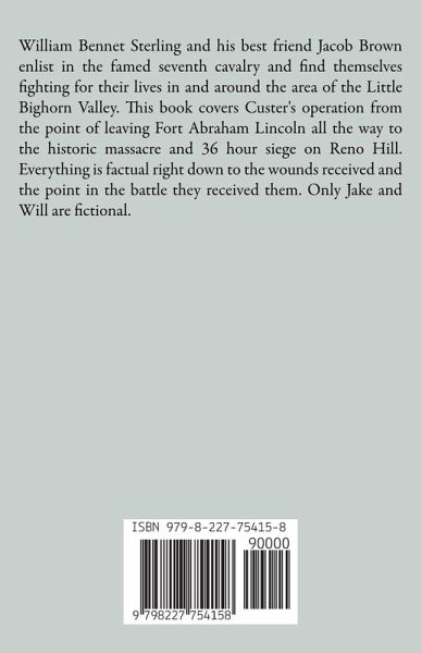 William Bennet Sterling and his best friend Jacob Brown enlist in the famed seventh cavalry and find themselves fighting for their lives in and around the area of the Little Bighorn Valley. This book covers Custer's operation from the point of leaving Fort Abraham Lincoln all the way to the historic massacre and 36 hour siege on Reno Hill. Everything is factual right down to the wounds received and the point in the battle they received them. Only Jake and Will are fictional.