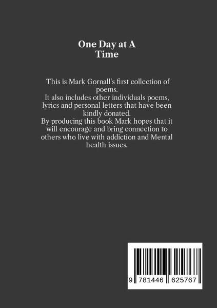 Real life poems from individuals who have been through some traumatic events due to Addiction and Mental Health. Each poem, Letter, reflects the pain and anguish and the emotional roller-coaster caused by these devastating afflictions. The sole purpose of One Day at A Time is to reach out to the still suffering, and to bring like minded people together. The more people connect and share there own personal accounts will ease the suffering, by talking and writing you take the power out of your demons. The apposite of Addiction is !!!!! CONNECTION !!!!!