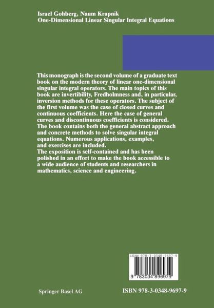 This monograph is the second volume of a graduate text book on the modern theory of linear one-dimensional singular integral equations. Both volumes may be regarded as unique graduate text books. Singular integral equations attract more and more attention since this class of equations appears in numerous applications, and also because they form one of the few classes of equations which can be solved explicitly. The present book is to a great extent based upon material contained in the second part of the authors' monograph [6] which appeared in 1973 in Russian, and in 1979 in German translation. The present text includes a large number of additions and complementary material, essentially changing the character, structure and contents of the book, and making it accessible to a wider audience. Our main subject in the first volume was the case of closed curves and continuous coeffi cients. Here, in the second volume, we turn to general curves and discontinuous coefficients. We are deeply grateful to the editor Professor G. Heinig, to the translator Dr. S. Roeh, and to the typist Mr. G. Lillack, for their patient work. The authors Ramat-Aviv, Ramat-Gan, May 26, 1991 11 Introduction This book is the second volume of an introduction to the theory of linear one-dimensional singular integral operators. The main topics of both parts of the book are the invertibility and Fredholmness of these operators. Special attention is paid to inversion methods.