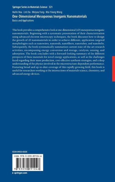 This book provides a comprehensive look at one-dimensional (1D) mesoporous inorganic nanomaterials. Beginning with a systematic presentation of their characterization using advanced electron microscopy techniques, the book discusses how to design the growth of 1D nanomaterials in order to achieve different, application-targeted morphologies such as nanowires, nanorods, nanofibers, nanotubes, and nanobelts. Subsequently, the book systematically summarizes current state-of-the-art research activities, encompassing energy conversion and storage, catalysis, sensing, and adsorption. The book concludes with a forward-looking summary of the different prospects of these materials for novel energy applications, as well as the challenges faced regarding their mass production, cost-effective synthesis strategies, and a deep understanding of the physics involved in the microstructure-dependent performance. Featuring broad and up-to-date coverage of this rapidly growing field, this book is useful for researchers working at the intersections of materials science, chemistry, and advanced energy devices.