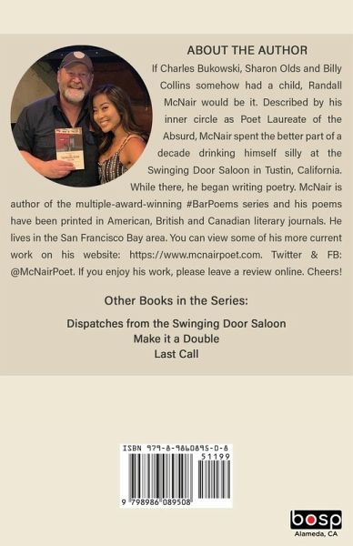 Poetry enthusiasts who choose the fourth book of Randall McNair's Bar Poems series should anticipate one thing in advance: prepare to be amazed. These aren't your usual literary philosophical blends, but gritty observations of life that test the heart, mind, and literary soul of its readers. One for the Road offers poems about booze, babes, and the world of drinking problems and solutions. Sometimes it's a cocktail of love, and sometimes it's a beer of busted dreams.