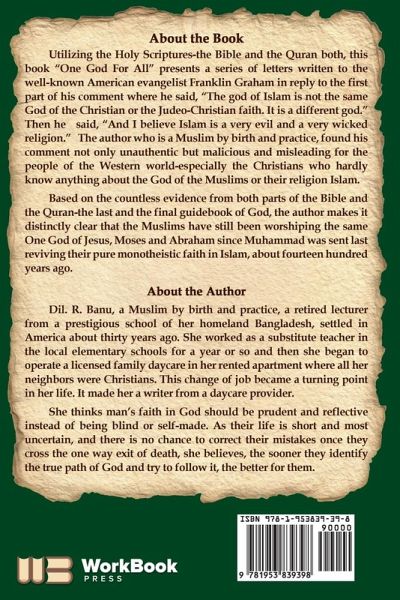 Utilizing the Holy Scriptures-the Bible and the Quran both, this book "One God For All" presents a series of letters written to the well-known American evangelist Franklin Graham in reply to the first part of his comment where he said, "The god of Islam is not the same God of the Christian or the Judeo-Christian faith. It is a different god." Then he said, "And I believe Islam is a very evil and a very wicked religion." The author who is a Muslim by birth and practice, found his comment not only unauthentic but malicious and misleading for the people of the Western world-especially the Christians who hardly know anything about the God of the Muslims or their religion Islam. Based on the countless evidence from both parts of the Bible and the Quran-the last and the final guidebook of God, the author makes it distinctly clear that the Muslims have still been worshiping the same One God of Jesus, Moses and Abraham since Muhammad was sent last reviving their pure monotheistic faith in Islam, about fourteen hundred years ago
