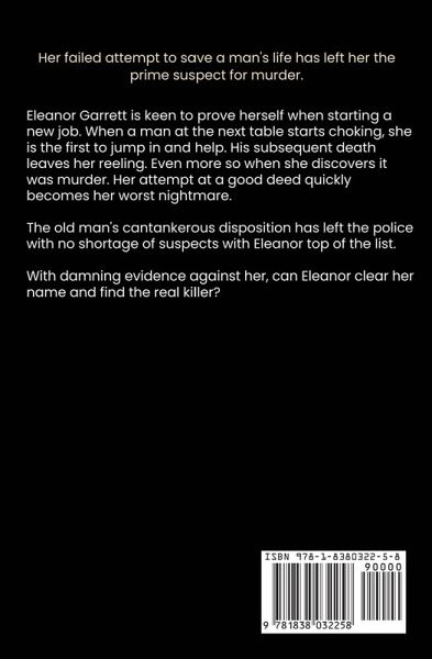 Her failed attempt to save a man's life has left her the prime suspect for murder. The third book in the Eleanor Garrett Mystery Series finds Eleanor on her first day at a new job. She thinks she is doing the right thing when she jumps in to help a man who is choking, but when he dies, her attempt at a good deed quickly becomes her worst nightmare. The old man's cantankerous disposition leaves the police with no shortage of suspects, Eleanor being top of the list. With damning CCTV evidence, can Eleanor clear her name and find justice?