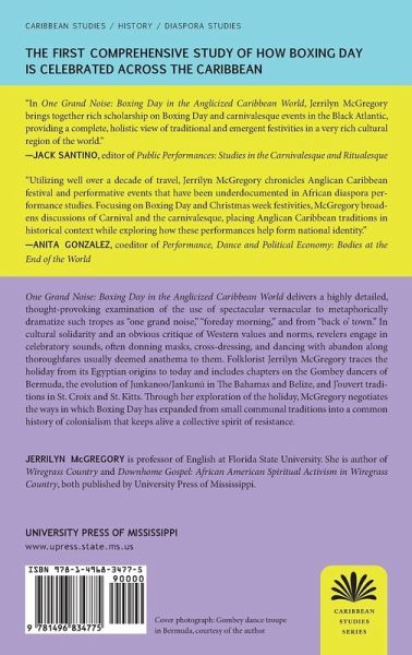 For many, December 26 is more than the day after Christmas. Boxing Day is one of the world's most celebrated cultural holidays. As a legacy of British colonialism, Boxing Day is observed throughout Africa and parts of the African diaspora, but, unlike Trinidadian Carnival and Mardi Gras, fewer know of Bermuda's Gombey dancers, Bahamian Junkanoo, Dangriga's Jankunú and Charikanari, St. Croix's Crucian Christmas Festival, and St. Kitts's Sugar Mas. One Grand Noise: Boxing Day in the Anglicized Caribbean World delivers a highly detailed, thought-provoking examination of the use of spectacular vernacular to metaphorically dramatize such tropes as "one grand noise," "foreday morning," and from "back o' town." In cultural solidarity and an obvious critique of Western values and norms, revelers engage in celebratory sounds, often donning masks, cross-dressing, and dancing with abandon along thoroughfares usually deemed anathema to them. Folklorist Jerrilyn McGregory demonstrates how the cultural producers in various island locations ritualize Boxing Day as a part of their struggles over identity, class, and gender relations in accordance with time and space. Based on ethnographic study undertaken by McGregory, One Grand Noise explores Boxing Day as part of a creolization process from slavery into the twenty-first century. McGregory traces the holiday from its Egyptian origins to today and includes chapters on the Gombey dancers of Bermuda, the evolution of Junkanoo/Jankunú in The Bahamas and Belize, and J'ouvert traditions in St. Croix and St. Kitts. Through her exploration of the holiday, McGregory negotiates the ways in which Boxing Day has expanded from small communal traditions into a common history of colonialism that keeps alive a collective spirit of resistance.