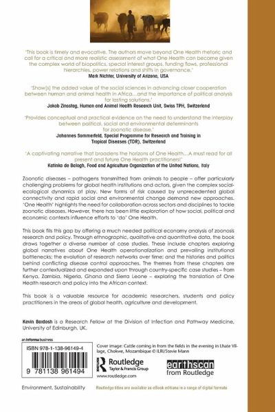 "The book is a pleasure to read with its detailed and clear case studies, and this is in large part because the co-authors, highly respected in their field, are social scientists who effectively use and describe the research techniques that are often unknown, and sometimes wrongly discounted by those health workers who are working to prevent and control emerging infections... This book is a must read for those who want to learn more about one health in general, and Africa in particular." - David L. Heymann, The Lancet