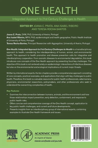Written by international experts, the ten chapters provide a comprehensive approach consisting of core concepts, practical examples, and applications that align with key challenges to public health. Therefore, this book is a valuable resource for public health professionals, veterinarians, physicians, environmental researchers, policymakers, and other professionals who seek to understand the overarching complexities of health.