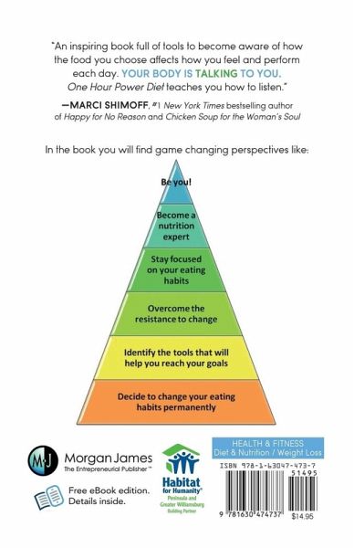 The "One Hour" is not the diet to end all diets. It's a beginning to a path of eating better and learning to eat better for a lifetime. The author's premise is awareness is the key to all change. And the proven method for long-term weight loss, getting healthy, and getting your body back in balance is by changing eating habits. Awareness of how the kind of food, the volume of food, and the frequency of eating affects how you feel and perform every day is the beginning. The "One Hour" post eating check-in teaches that very quickly and is the beginning. "One Hour" is loaded with game changing perspectives that will change the way you think, feel, and use food.